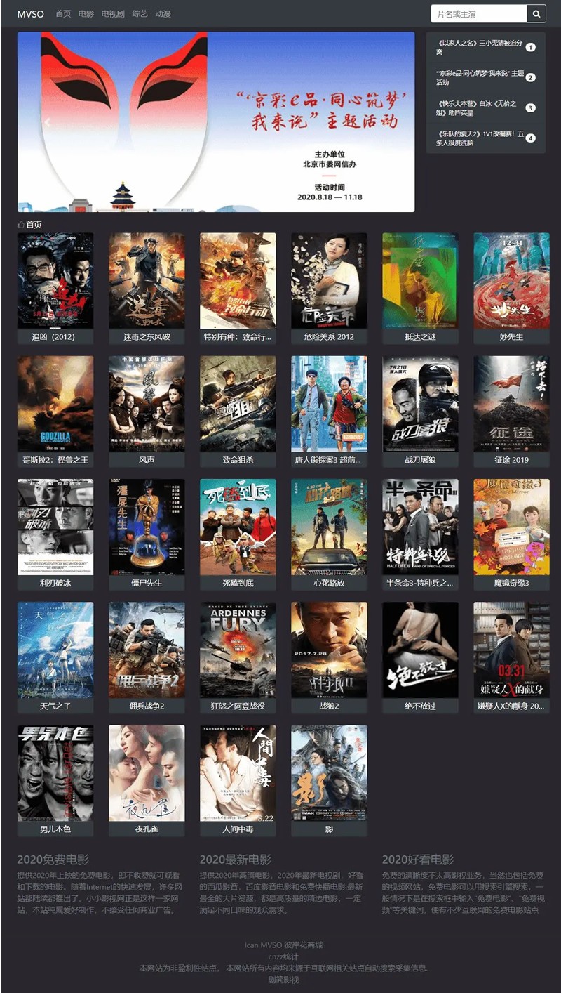 MVSO影视程序,精简UI,魔改超强SEO,程序对接360影视,和可以自己自定义苹果CMS资源站接口,程序后端采用Layuimini进行实现。