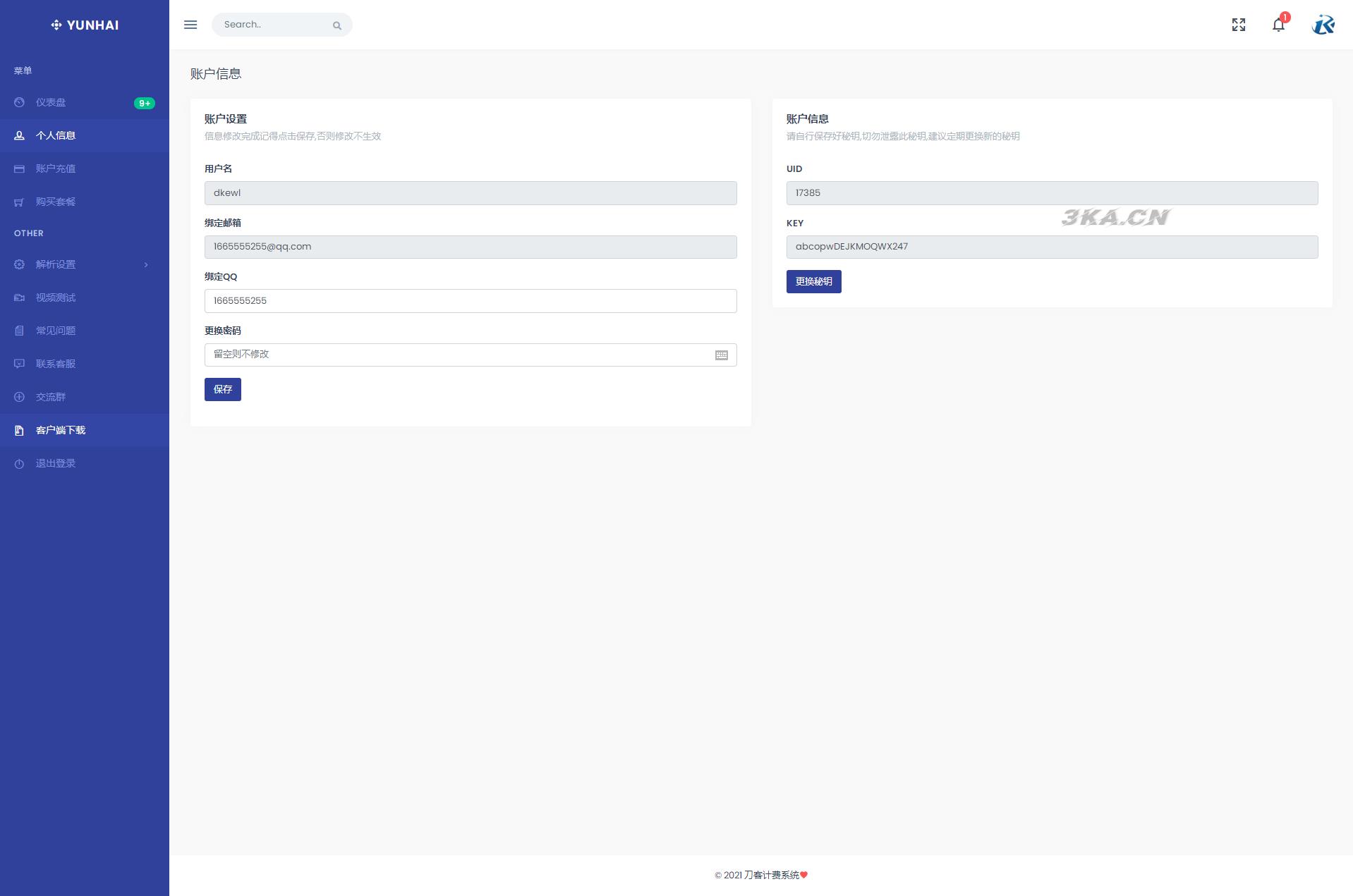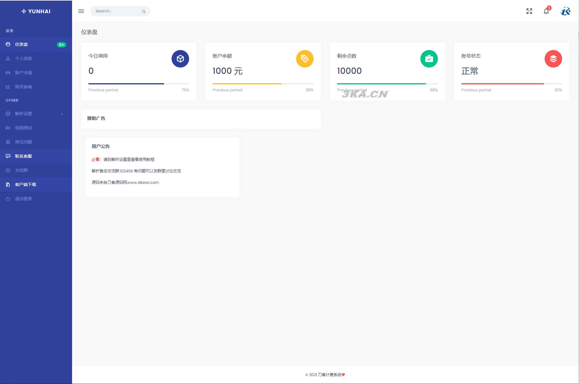 源码含:替换系统、计费系统、客户端源码,安装云海解析计费系统需 PHP7 以上