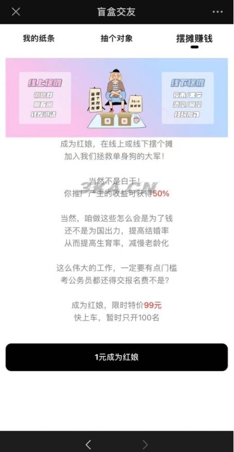 近期爆火的模式,无压力付费交友,由线下摆摊兴起,已被验证成功的交友模式。