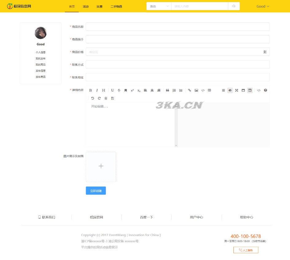 二手物品信息展示 信息搜索 发布活动和比赛以及商品