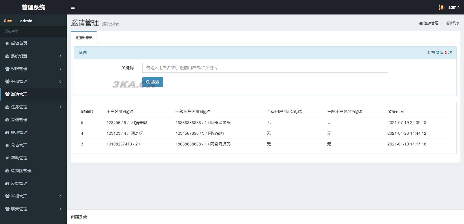 9、支持三级分销功能、邀请海报、链接邀请、二维码邀请、自动识别并绑定邀请码(比如我分享给您链接,打开之后系统自动识别自动填写邀请码,无需手动填写)