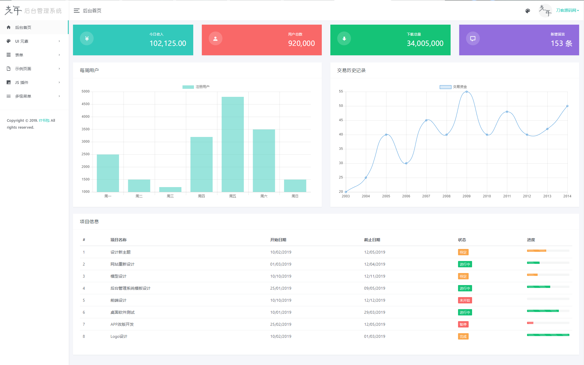 另外:logo、顶部和侧边栏可单独调整颜色(黑色和半透明主题时选择白色不变)。