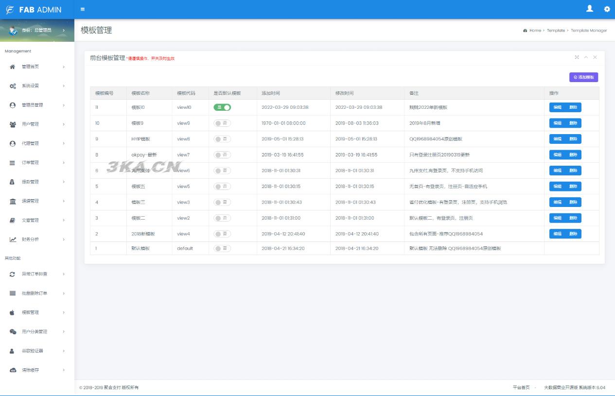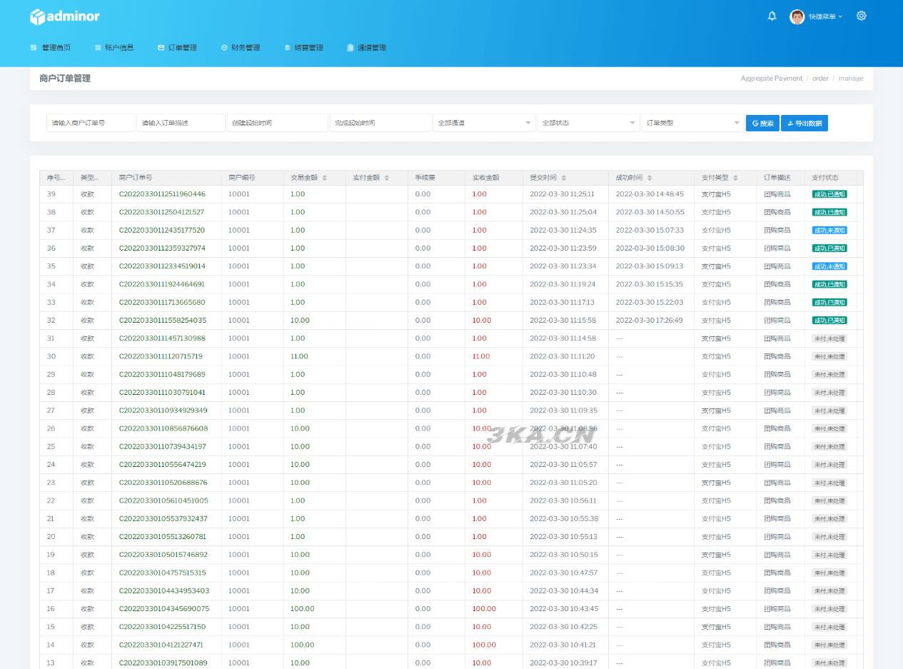 【帐号类型】系统后台多类型管理员、商户代理、普通商户、接口用户;对用的板块后台都不一样相关的数据统计齐全有效。