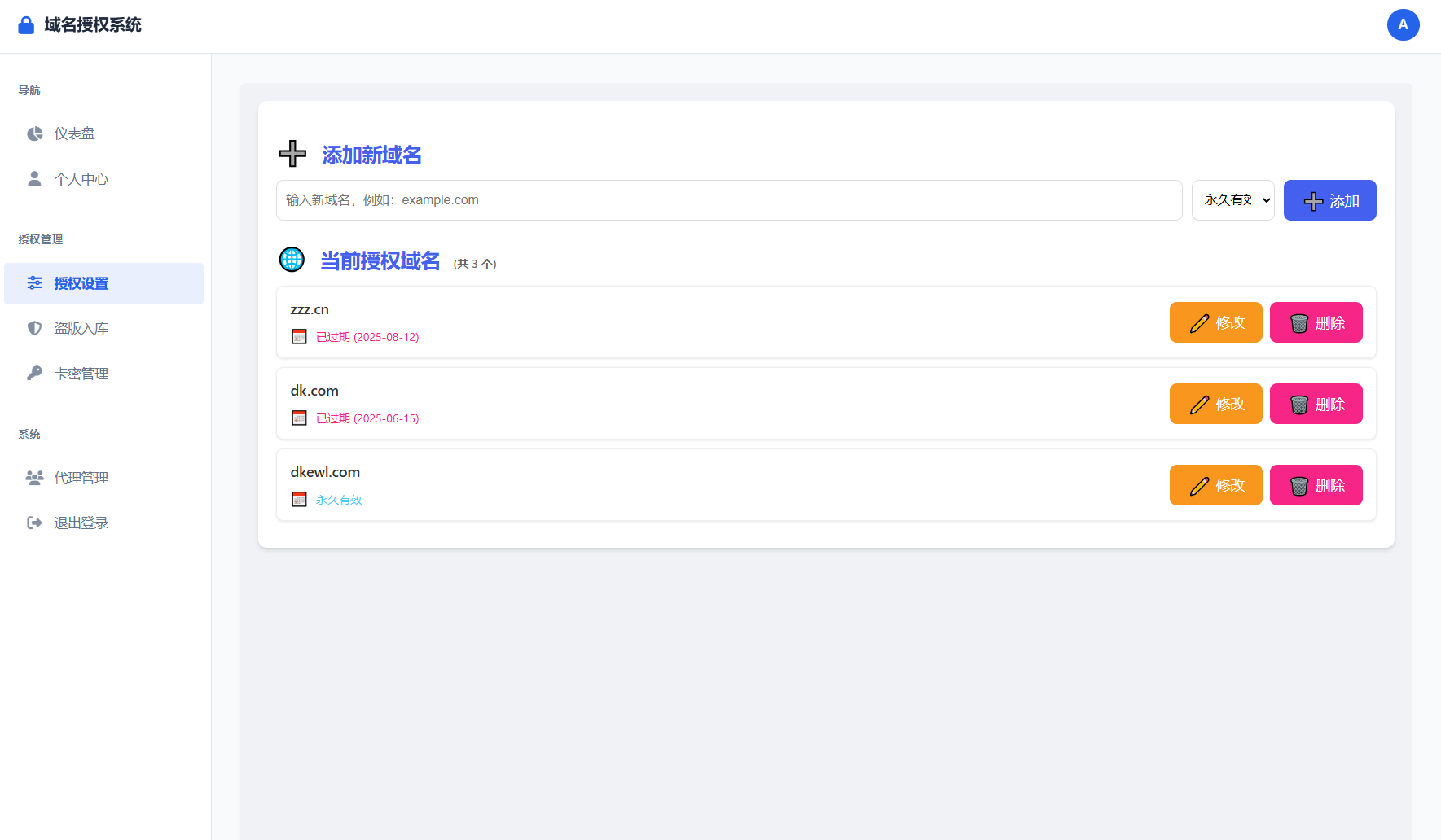 前台支持自助更换授权,可批量生成,支持自定义设置到期时间