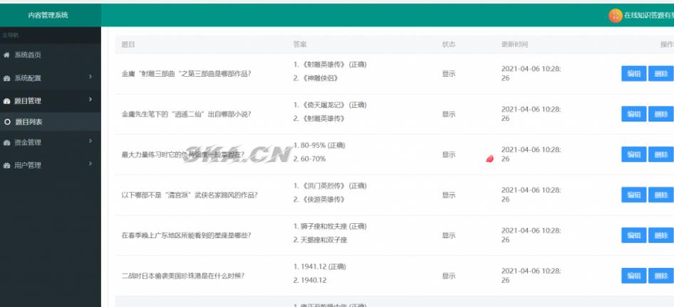 题库后台自己输入就可以。