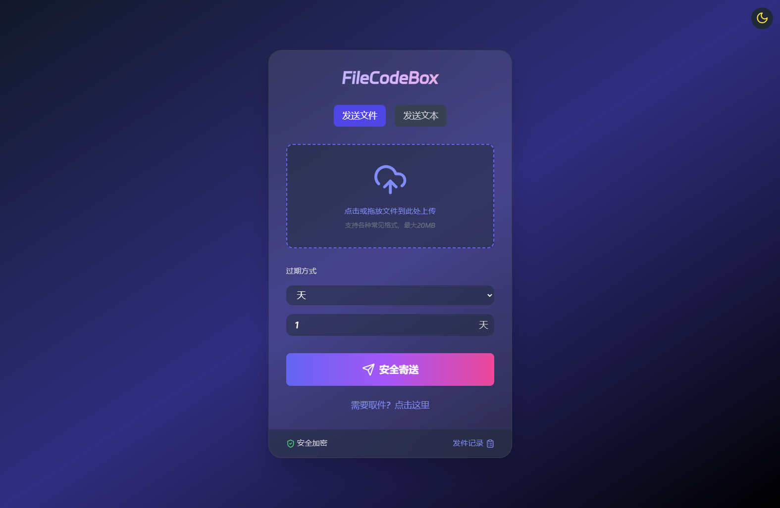 在很早的时候我发布过最早版本的,但是那个UI不好看,但是今天新版UI他来了,这是一款方便的匿名口令分享文本,文件,像拿快递一样取文件