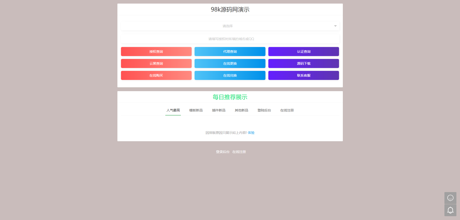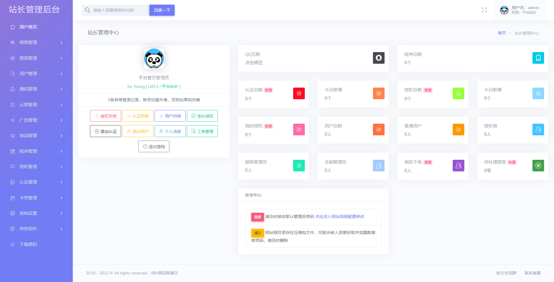 最新修复版孤傲授权系统网站授权源码去后门php源码 2026-01-21 其他源码 3 推广 简介: 2023最新修复版孤傲系统网站授权源码去后门PHP源码 这是一套非常实用的授权源码,相比其他授权源码,该授权系统极度良心,没有任何后门,可以放心使用。 该授权系统支持多程序授权,云端添加用户授权和卡密兑换在线购买更换等多种功能。 需要注意的是,该授权系统已经去除了源码的后门,并且将后门打包在一个压缩包里,用户可以直接删除后门即可,使用起来非常方便。 图片: 资源下载下载价格免费立即购买 原文链接:https://mbt.dbdy5.com/2026/01/21/%e6%9c%80%e6%96%b0%e4%bf%ae%e5%a4%8d%e7%89%88%e5%ad%a4%e5%82%b2%e6%8e%88%e6%9d%83%e7%b3%bb%e7%bb%9f%e7%bd%91%e7%ab%99%e6%8e%88%e6%9d%83%e6%ba%90%e7%a0%81%e5%8e%bb%e5%90%8e%e9%97%a8php%e6%ba%90/,转载请注明出处。 0