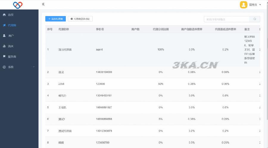 2、代理商->编辑:设置代理商进件费率