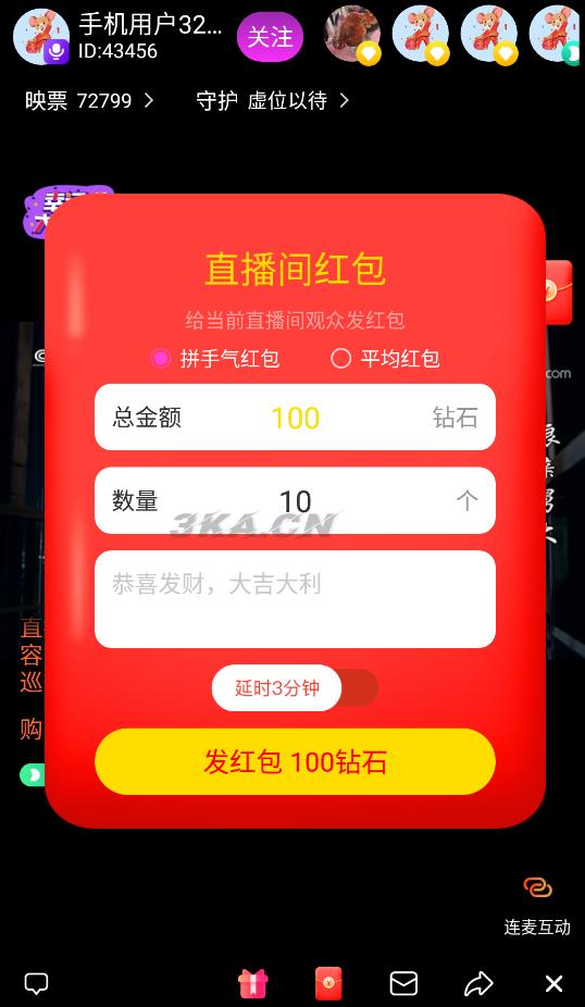 4.每日在线任务,直播间红包,直播连麦,直播pk,会员靓号坐骑