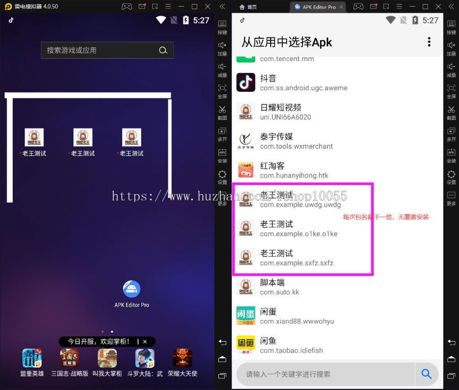 也可以上传打包好的apk五分钟自动更换包名和签名,