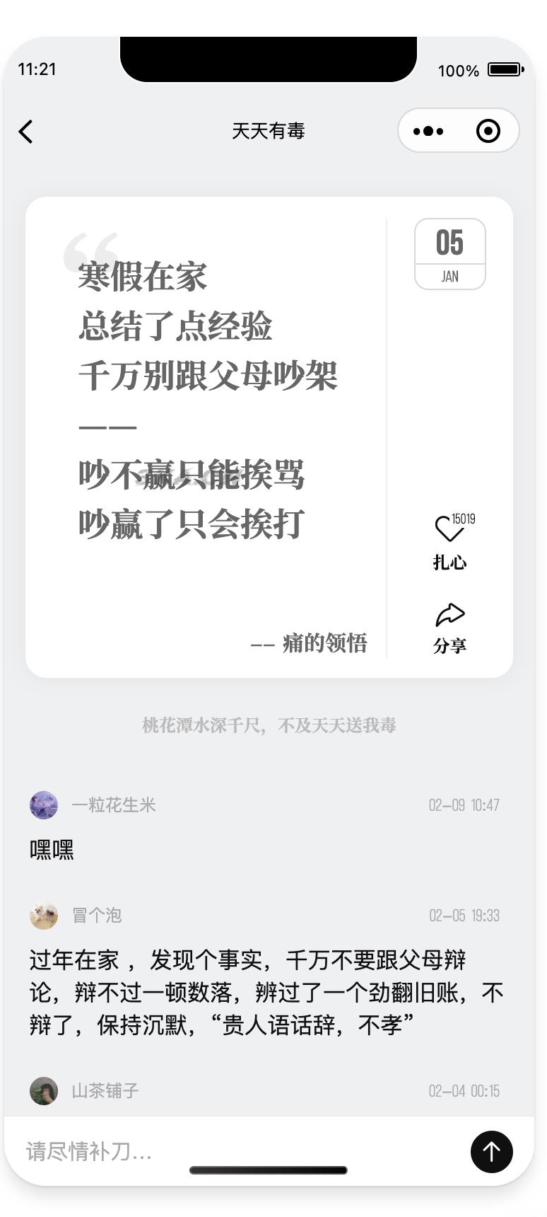 毒鸡汤文案类小程序源码分享 2026-01-21 社区问答 3 推广 简介: 毒鸡汤文案类小程序源码分享 图片: 资源下载下载价格免费立即购买 原文链接:https://mbt.dbdy5.com/2026/01/21/%e6%af%92%e9%b8%a1%e6%b1%a4%e6%96%87%e6%a1%88%e7%b1%bb%e5%b0%8f%e7%a8%8b%e5%ba%8f%e6%ba%90%e7%a0%81%e5%88%86%e4%ba%ab/,转载请注明出处。 0