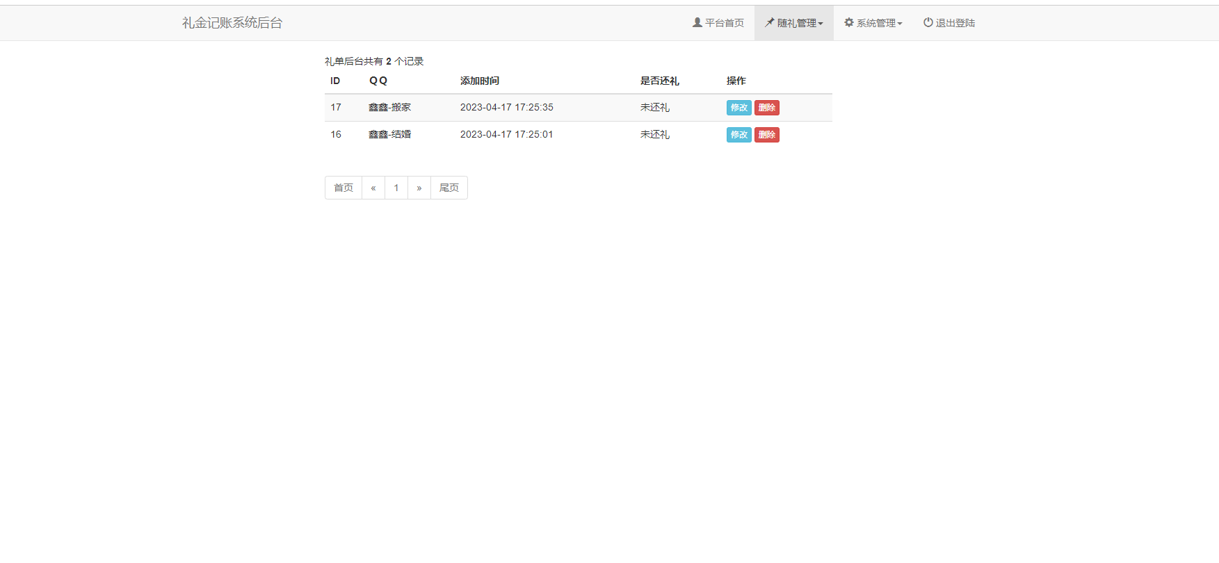 因为亲朋好友比较多在收份子钱之后还礼总是要打开微信查找转账记录,如果隔的时间比较长还丢失,所以就简单该改了一下数据查询系统,前台访问查询需要验证独立密码,后台支持新增记录,修改记录,搜索记录,免费使用全开源无加密。