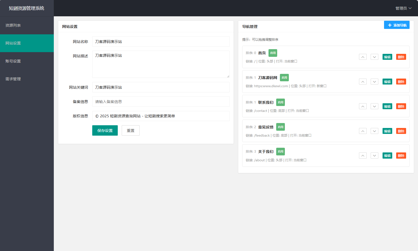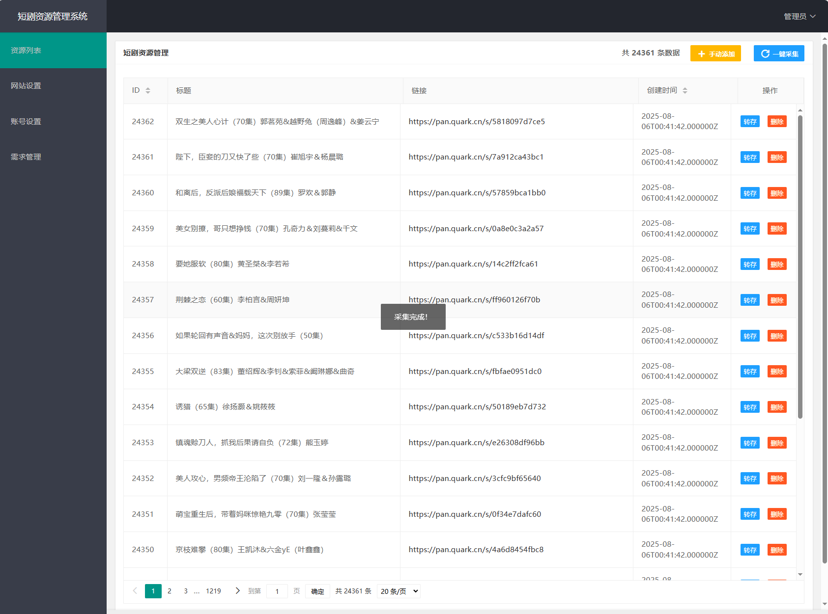 网盘短剧资源转存项目源码 支持夸克 带后台 附教程 2026-01-21 其他源码 3 推广 简介: 网盘短剧资源转存项目源码 支持夸克 带后台 附教程 安装教程: 测试环境:Nginx + PHP7.4 + mysql5.7 数据库信息配置文件:.env 网站运行目录设置为:public 图片: 资源下载下载价格免费立即购买 原文链接:https://mbt.dbdy5.com/2026/01/21/%e7%bd%91%e7%9b%98%e7%9f%ad%e5%89%a7%e8%b5%84%e6%ba%90%e8%bd%ac%e5%ad%98%e9%a1%b9%e7%9b%ae%e6%ba%90%e7%a0%81-%e6%94%af%e6%8c%81%e5%a4%b8%e5%85%8b-%e5%b8%a6%e5%90%8e%e5%8f%b0-%e9%99%84%e6%95%99/,转载请注明出处。 0