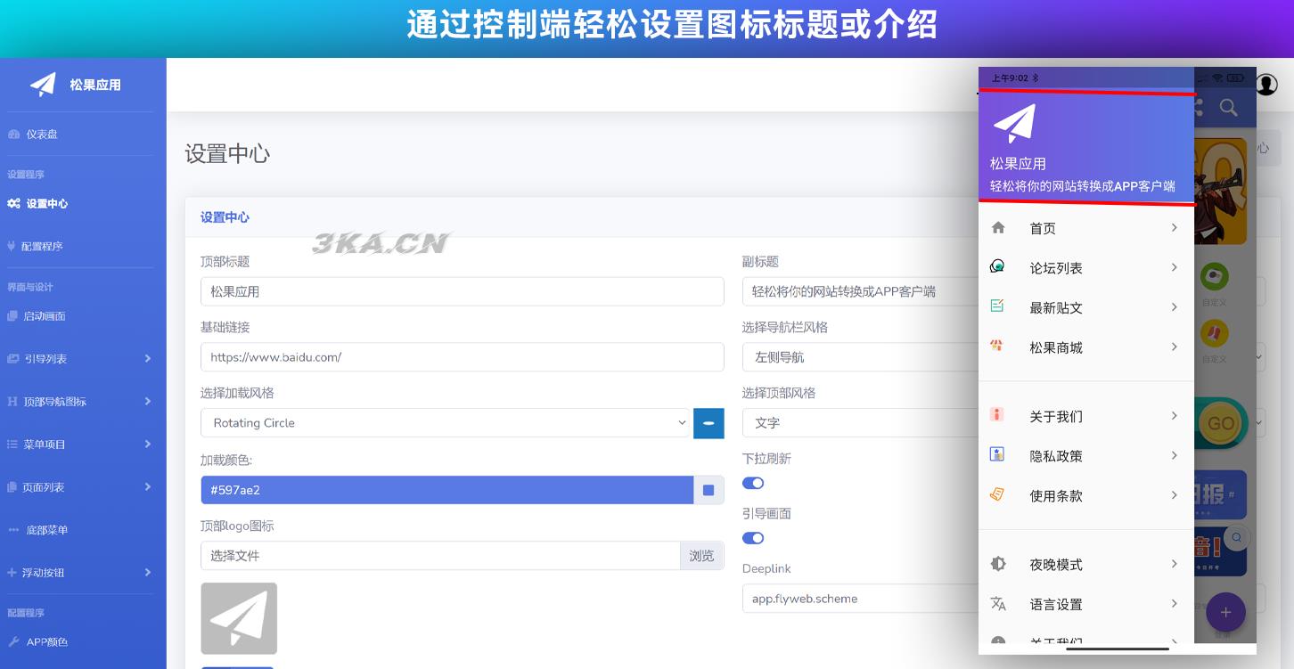 这是一款网站转换成APP的源代码,开发语言使用Flutter,开发工具使用的是AndroidStudio,你只需要在APP源代码里面填写你的域名,即可生成即可生成APP,包括安卓或者苹果,与此同时我们提供了APP的控制端.你可以通过控制端设置APP的颜色、添加APP的图标、添加APP的菜单栏目。