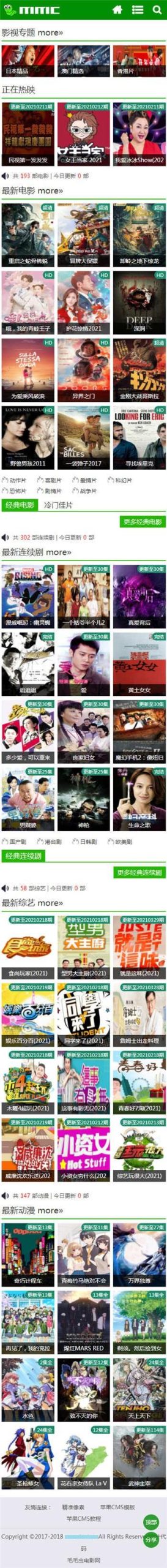 苹果CMSV10绿色毛毛虫主题模板源码 2026-01-21 视频音乐 3 推广 简介: 一套简洁的绿色风格毛毛虫苹果CMS模板,苹果CMSV10版本,自适应手机端。 模板包含影视、新闻、留言、专题模块,页面很多就不一一截图了。 修复了首页图片不显示的BUG,已测试,完美无错。 安装方法: 复制模板文件夹到template目录里,后台系统设置选择当前模板文件夹名字即可。 图片: 资源下载下载价格免费立即购买 原文链接:https://mbt.dbdy5.com/2026/01/21/%e8%8b%b9%e6%9e%9ccmsv10%e7%bb%bf%e8%89%b2%e6%af%9b%e6%af%9b%e8%99%ab%e4%b8%bb%e9%a2%98%e6%a8%a1%e6%9d%bf%e6%ba%90%e7%a0%81/,转载请注明出处。 0