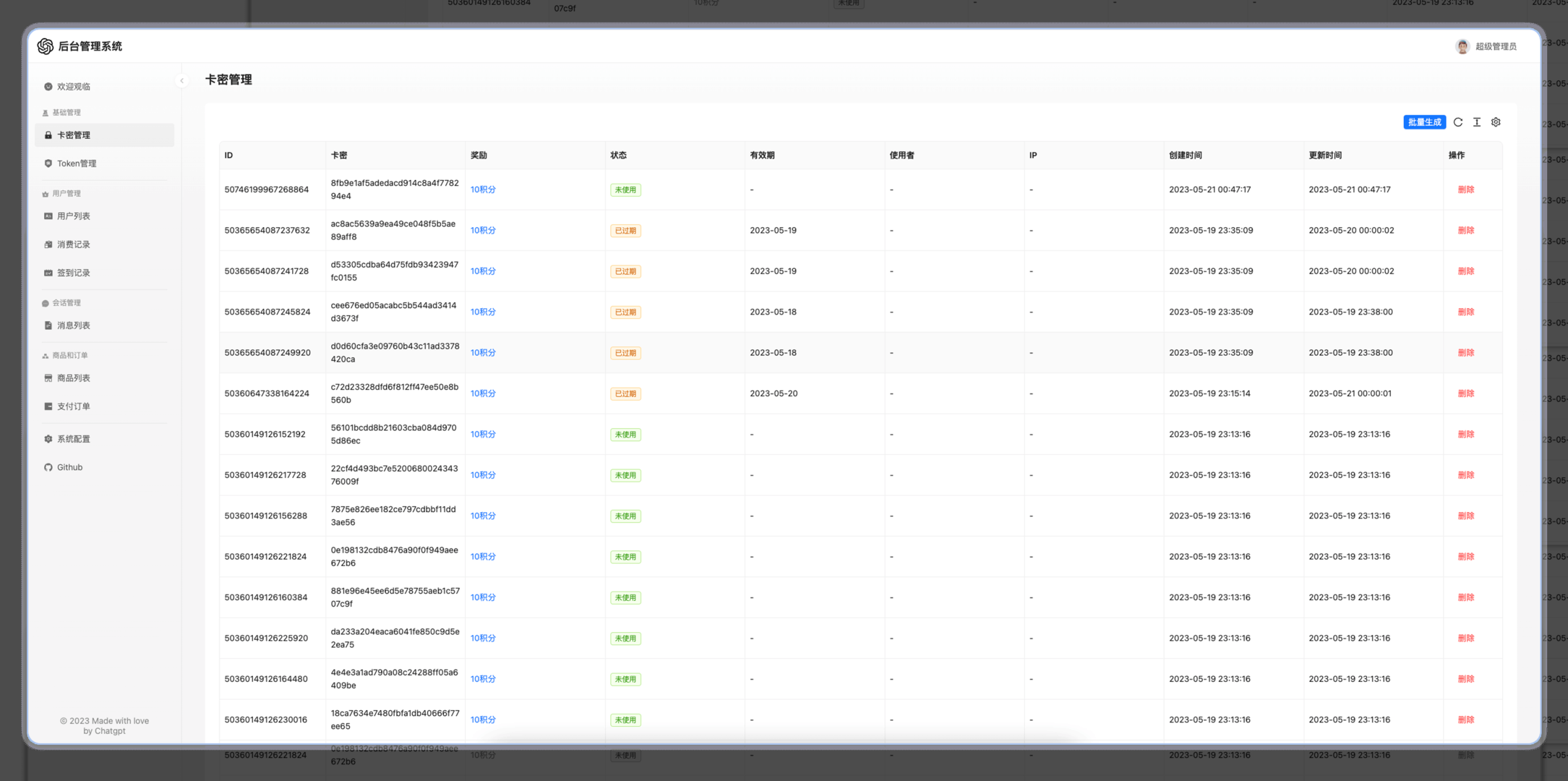 后台管理系统,可对用户,Token,商品,卡密等进行管理