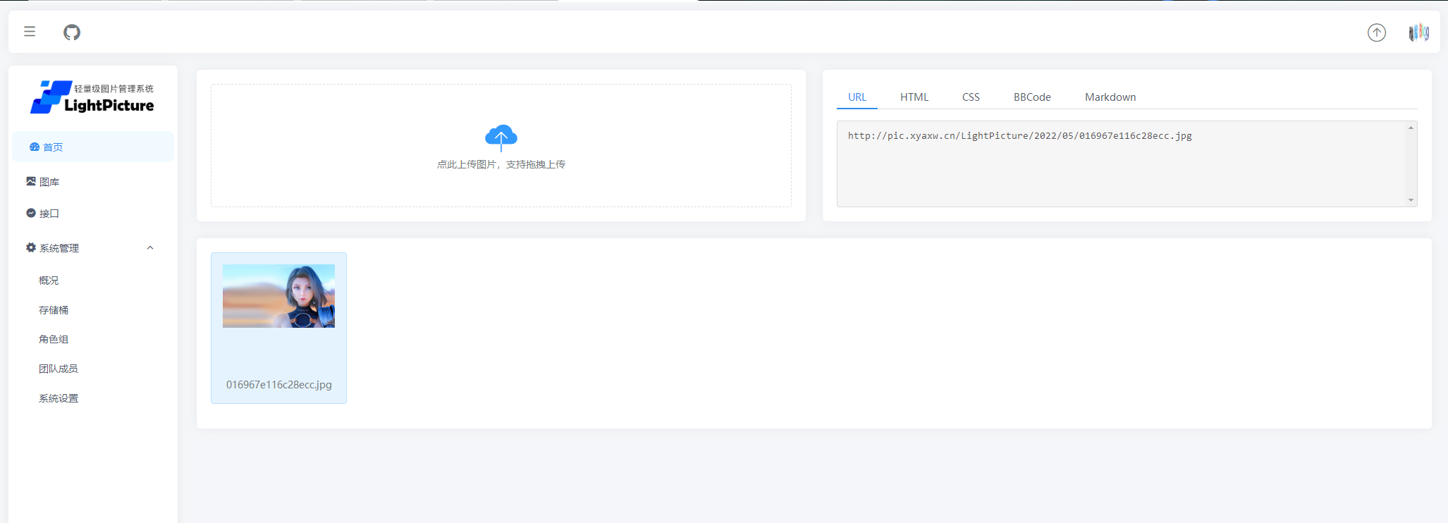 LightPicture – 开源图床系统 高性能、精致、扁平化、多样化储存式的企业化免费图床程序,LightPicture图床系统支持第三方云储存,本地、阿里云 OSS、腾讯云 COS、七牛云 支持多桶储存,可同时添加多个对象存储桶管理 多图上传、拖拽上传、粘贴上传、上传预览、全屏预览、一键复制图片外链 多用户管理、分组管理;不同分组用户控制不同的存储桶 完整的权限控制功能,不同用户组可分配不同的操作权限,控制其上传删除及查看 完整的可视化日志功能,记录用户所有操作,方便事件溯源 全局配置用户初始剩余储存空间、设置指定用户剩余储存空间 支持接口上传、接口删除 原创Geek扁平化页面风格,简约大气;前端使用vue开发,前后端分离