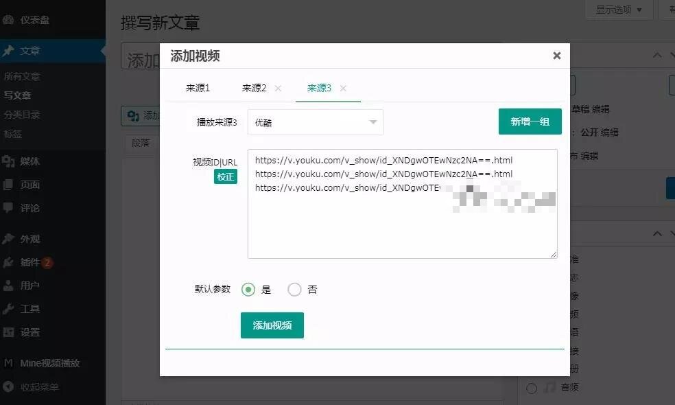支持剧集列表,支持多组视频来源,这款视频播放器WordPress插件支持m3u8/mp4等网页视频格式,同时支持直播源,也可将主流视频站的视频通过第三方解析程序来播放