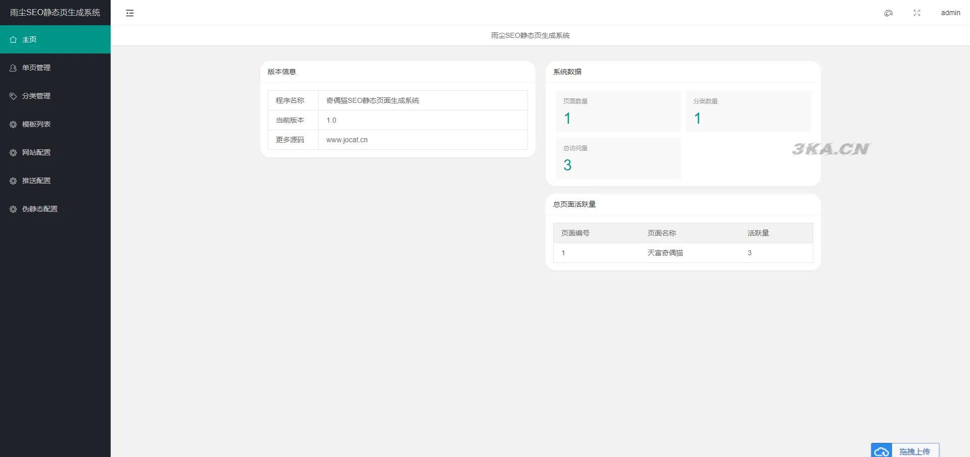 一款随机静态页面生成系统,一秒钟可生成上千条单页面,批量生成单页用来做SEO是非常不错的源码。雨尘SEO静态页面生成系统源码v1.3版本,支持文章采集,功能,多模板选择批量生成单页,本次更新增了百度自动推送和网站地图sitemap功能。